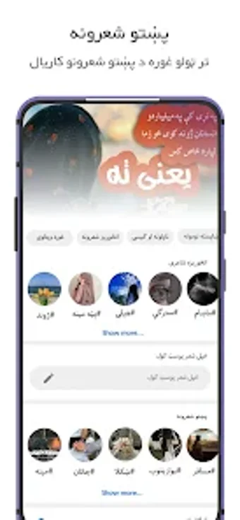 Met een gebruiksvriendelijke interface maakt de app het eenvoudig om door verschillende categorieën van poëzie te bladeren, waaronder ghazals en verhalen. De applicatie is een waardevolle bron voor liefhebbers van de Pashto literatuur, waardoor ze zowel traditionele als moderne werken kunnen ontdekken en genieten van de schoonheid van de Pashto taal.